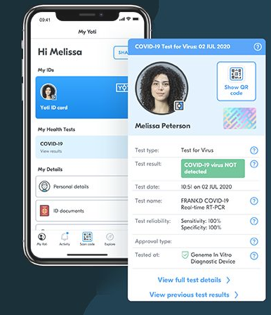 相關人員可以掃描快速檢測套件上的二維碼,然后在便攜儀器中對口腔咽拭子進行分析。結果出來之后,就會自動發送給 Yoti 應用程序。