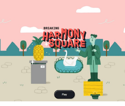 這款簡單的網絡游戲被稱為“和諧廣場”,旨在使人們能夠在互聯網上發現虛假新聞。它有四個基于決策的簡短章節,將幫助玩家掌握傳播假新聞和在互聯網上誘騙人們的不同技術。完成每一章后,玩家將掌握其中一種技巧。