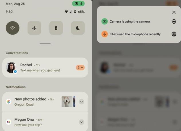 該公司似乎已經加倍了與隱私相關的功能。從泄漏的圖像看來,在右上角會出現一個小圖標,該圖標將通知您是否正在使用相機或麥克風。點擊該圖標將顯示哪個應用程序是什么,并且將有一種快速的方法來禁用訪問。