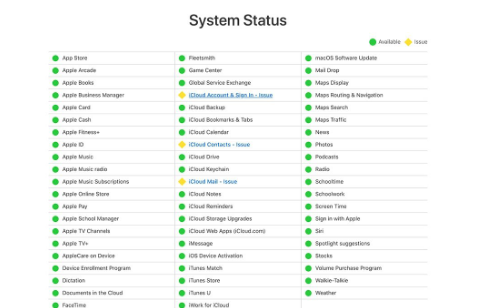 根據(jù)Apple的系統(tǒng)狀態(tài)網(wǎng)頁,iCloud帳戶和登錄,聯(lián)系人和郵件遇到未指定的問題。該問題還擴(kuò)展到“查找我”(Find My),該服務(wù)為蘋果的眾包設(shè)備定位網(wǎng)絡(luò)提供了支持,該網(wǎng)絡(luò)支撐了其新的AirTag跟蹤器。