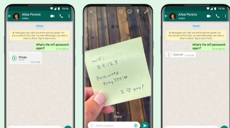 “我們正在推出新的“一次性查看”照片和視頻,這些照片和視頻在打開后會從聊天中消失,讓用戶可以更好地控制自己的隱私。例如,您可能會發送您在商店試穿的一些新衣服的一次查看照片,對某個時刻的快速反應,或者諸如 Wi-Fi 密碼之類的敏感信息,”WhatsApp 宣布。