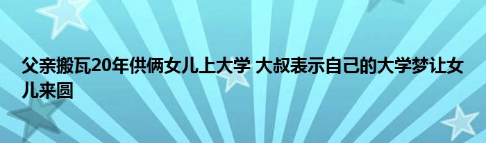 今天來(lái)聊聊一篇關(guān)于父親搬瓦20年供倆女兒上大學(xué),大叔表示自己的大學(xué)夢(mèng)讓女兒來(lái)圓的文章,現(xiàn)在就為大家來(lái)簡(jiǎn)單介紹下父親搬瓦20年供倆女兒上大學(xué),大叔表示自己的大學(xué)夢(mèng)讓女兒來(lái)圓,希望對(duì)各位小伙伴們有所幫助。