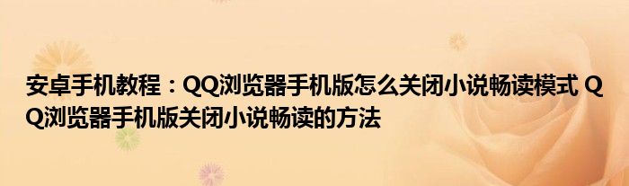 如今使用安卓手機的小伙伴們是越來越多了,那么安卓手機當中是有很多小技巧的,這些技巧很多小伙伴一般都是不知道如何來實用的,就好比最近就有很多小伙伴們想要知道QQ瀏覽器手機版怎么關閉小說暢讀模式 QQ瀏覽器手機版關閉小說暢讀的方法 ,那么既然現在大家對于QQ瀏覽器手機版怎么關閉小說暢讀模式 QQ瀏覽器手機版關閉小說暢讀的方法 都感興趣,小編就來給大家分享下關于QQ瀏覽器手機版怎么關閉小說暢讀模式 QQ瀏覽器手機版關閉小說暢讀的方法 的一些信息吧。