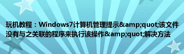 今天要來給大家介紹下Windows7計算機管理提示"該文件沒有與之關聯的程序來執行該操作"解決方法,之所以要來給大家針對這個Windows7計算機管理提示"該文件沒有與之關聯的程序來執行該操作"解決方法進行一個介紹的主要目的是現在很多小伙伴門對于Windows7計算機管理提示"該文件沒有與之關聯的程序來執行該操作"解決方法了解是非常少的,都不知道具體的是怎么回事,那么感興趣的小伙伴可以看下下面的介紹哦。