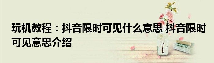 以上就是抖音限時可見什么意思的全部內容,希望以上內容能幫助到朋友們。