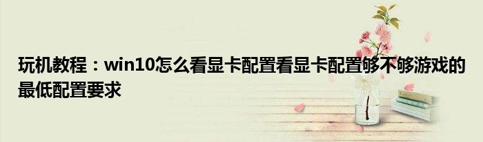 今天要來給大家介紹下win10怎么看顯卡配置看顯卡配置夠不夠游戲的最低配置要求,之所以要來給大家針對這個win10怎么看顯卡配置看顯卡配置夠不夠游戲的最低配置要求進行一個介紹的主要目的是現在很多小伙伴門對于win10怎么看顯卡配置看顯卡配置夠不夠游戲的最低配置要求了解是非常少的,都不知道具體的是怎么回事,那么感興趣的小伙伴可以看下下面的介紹哦。