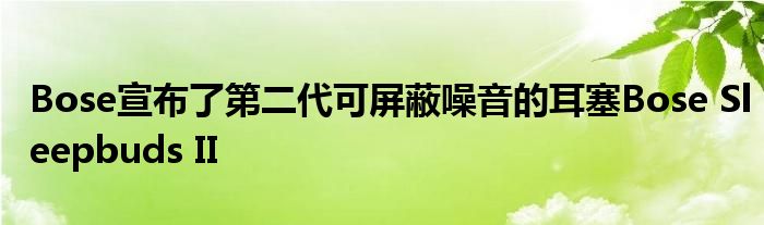 Bose 宣布了第二代可屏蔽噪音的耳塞Bose Sleepbuds II。在品牌宣布推出QuietComfort 35 II游戲耳機和其Frames系列中的三款新的音頻包裝太陽鏡之后幾天,就到了這一天。該類別中的首款產品于2017年通過眾籌平臺發布。