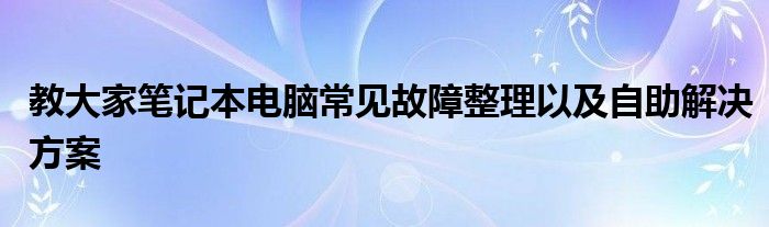 近日有關于教大家筆記本電腦常見故障整理以及自助解決方案的問題受到了很多網友們的關注,大多數網友都想要知道教大家筆記本電腦常見故障整理以及自助解決方案的具體情況,那么關于到教大家筆記本電腦常見故障整理以及自助解決方案的相關信息,小編也是在網上進行了一系列的信息,那么接下來就由小編來給大家分享下小編所收集到與教大家筆記本電腦常見故障整理以及自助解決方案相關的信息吧(以下內容來自于網絡非小編所寫,如有侵權請與站長聯系刪除)
