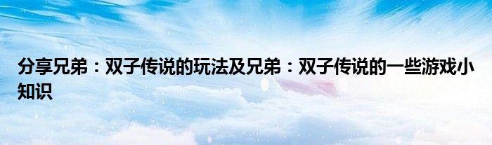 對于游戲愛好者來說,一些游戲攻略就是必備的開局利器了,近來發(fā)現(xiàn)不少網(wǎng)友對于兄弟:雙子傳說這款游戲的關(guān)注熱度頗高的,那么小編今天就針對兄弟:雙子傳說收集了一些相關(guān)的訊息 希望小編收集的這些訊息 能幫助到你。