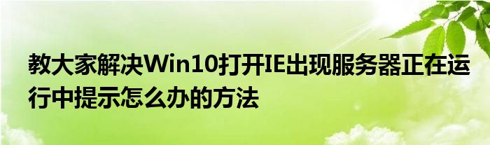 現在越來越多的小伙伴對于教大家解決Win10打開IE出現服務器正在運行中提示怎么辦的方法這方面的問題開始感興趣,因為大家現在都是想要熟知,那么既然現在大家都想要知道教大家解決Win10打開IE出現服務器正在運行中提示怎么辦的方法,小編今天就來給大家針對這樣的問題做個科普介紹吧。