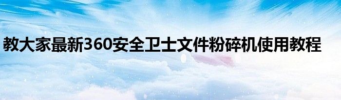 今天小編來給大家針對這個教大家最新360安全衛士文件粉碎機使用教程的問題來進行一個介紹,畢竟當下也是有諸多的小伙伴對于教大家最新360安全衛士文件粉碎機使用教程這個問題非常的重視的,下面大家可以看下具體的詳情