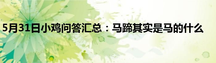 近日有關于5月31日小雞問答匯總:馬蹄其實是馬的什么的問題受到了很多網友們的關注,大多數網友都想要知道5月31日小雞問答匯總:馬蹄其實是馬的什么的具體情況,那么關于到5月31日小雞問答匯總:馬蹄其實是馬的什么的相關信息,小編也是在網上進行了一系列的信息,那么接下來就由小編來給大家分享下小編所收集到與5月31日小雞問答匯總:馬蹄其實是馬的什么相關的信息吧(以下內容來自于網絡非小編所寫,如有侵權請與站長聯系刪除)