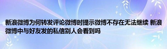 今天小編來給大家針對這個新浪微博為何轉發評論微博時提示微博不存在無法繼續 新浪微博中與好友發的私信別人會看到嗎的問題來進行一個介紹,畢竟當下也是有諸多的小伙伴對于新浪微博為何轉發評論微博時提示微博不存在無法繼續 新浪微博中與好友發的私信別人會看到嗎這個問題非常的重視的,下面大家可以看下具體的詳情