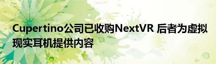 Cupertino公司已收購NextVR,后者為虛擬現實耳機提供內容。蘋果向彭博社證實了這一收購。