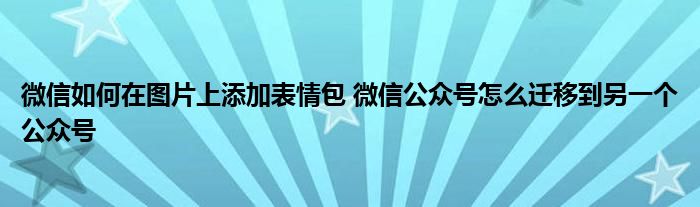 今天小編來給大家針對這個微信如何在圖片上添加表情包 微信公眾號怎么遷移到另一個公眾號的問題來進行一個介紹,畢竟當下也是有諸多的小伙伴對于微信如何在圖片上添加表情包 微信公眾號怎么遷移到另一個公眾號這個問題非常的重視的,下面大家可以看下具體的詳情