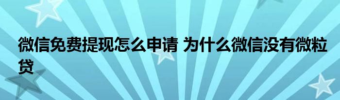 今天小編來給大家針對這個微信免費提現怎么申請 為什么微信沒有微粒貸的問題來進行一個介紹,畢竟當下也是有諸多的小伙伴對于微信免費提現怎么申請 為什么微信沒有微粒貸這個問題非常的重視的,下面大家可以看下具體的詳情