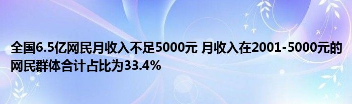 關(guān)于到現(xiàn)在全國6.5億網(wǎng)民月收入不足5000元 月收入在2001-5000元的網(wǎng)民群體合計(jì)占比為33.4%這個(gè)話題,相信很多小伙伴都是非常有興趣了解的吧,因?yàn)檫@個(gè)話題也是近期非?;馃岬?,那么既然現(xiàn)在大家都想要知道全國6.5億網(wǎng)民月收入不足5000元 月收入在2001-5000元的網(wǎng)民群體合計(jì)占比為33.4%,小編也是到網(wǎng)上收集了一些與全國6.5億網(wǎng)民月收入不足5000元 月收入在2001-5000元的網(wǎng)民群體合計(jì)占比為33.4%相關(guān)的信息,那么下面分享給大家一起了解下吧。