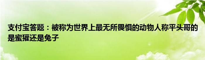 關于到現在支付寶答題:被稱為世界上最無所畏懼的動物人稱平頭哥的是蜜獾還是兔子這個話題,相信很多小伙伴都是非常有興趣了解的吧,因為這個話題也是近期非常火熱的,那么既然現在大家都想要知道支付寶答題:被稱為世界上最無所畏懼的動物人稱平頭哥的是蜜獾還是兔子,小編也是到網上收集了一些與支付寶答題:被稱為世界上最無所畏懼的動物人稱平頭哥的是蜜獾還是兔子相關的信息,那么下面分享給大家一起了解下吧。