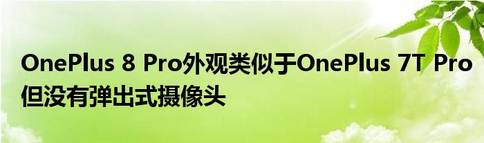 小編發(fā)現(xiàn)不少朋友對(duì)于 OnePlus 8 Pro外觀類似于OnePlus 7T Pro但沒(méi)有彈出式攝像頭 這方面的信息都比較感興趣,小編就針對(duì) OnePlus 8 Pro外觀類似于OnePlus 7T Pro但沒(méi)有彈出式攝像頭整理了一些相關(guān)方面的信息在這里分享給大家。