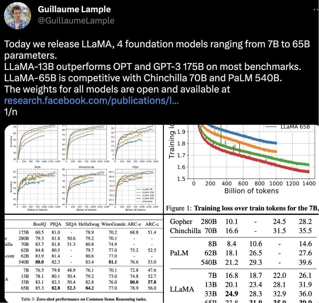 根據(jù)消息顯示,已經(jīng)臣服很長(zhǎng)時(shí)間的Meta放出來(lái)了一個(gè)大招,并且一次性就公布了4種尺寸的大語(yǔ)言模型。這4個(gè)大語(yǔ)言模型LLaMA,分別是7B,13B,33B和65B。也有許多網(wǎng)友將他們用小杯,中杯,大杯和超大杯來(lái)形容,看起來(lái)十分的形象和貼切。相關(guān)文章在網(wǎng)絡(luò)上快速火爆,引起了許多網(wǎng)友的關(guān)注。
