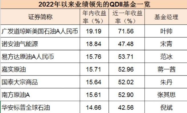 根據(jù)202年基金業(yè)績(jī)的分析來看廣發(fā)道瓊斯石油指數(shù)的回報(bào)率達(dá)到了68.48%,成為了2022年回報(bào)率最高的公募產(chǎn)品,除了廣發(fā)道瓊斯石油以外,多只油氣主題的基金都得到了超過50%的回報(bào)率同時(shí)大多數(shù)的QD11三年期和5年期的業(yè)績(jī)都出現(xiàn)了大幅度的上漲,油氣主題的基金業(yè)績(jī),由于國(guó)際油價(jià)的不斷上漲也對(duì)其業(yè)績(jī)起到了推動(dòng)的作用除了廣發(fā)道瓊斯石油以外,諾安油氣能源,國(guó)泰大宗商品嘉實(shí)原油等產(chǎn)品的基金回報(bào)率都在30%左右。