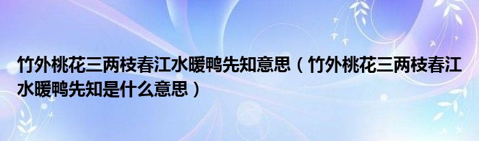 大家好,小帥來為大家解答以上問題。竹外桃花三兩枝春江水暖鴨先知意思,竹外桃花三兩枝春江水暖鴨先知是什么意思很多人還不知道,現在讓我們一起來看看吧!