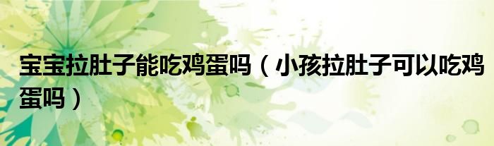 大家好,小帥來為大家解答以上問題。寶寶拉肚子能吃雞蛋嗎,小孩拉肚子可以吃雞蛋嗎很多人還不知道,現在讓我們一起來看看吧!