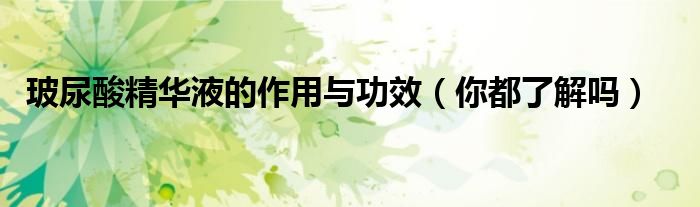 大家好,小帥來為大家解答以上問題。玻尿酸精華液的作用與功效,你都了解嗎很多人還不知道,現在讓我們一起來看看吧!