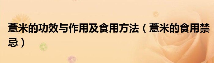大家好,小帥來為大家解答以上問題。薏米的功效與作用及食用方法,薏米的食用禁忌很多人還不知道,現在讓我們一起來看看吧!