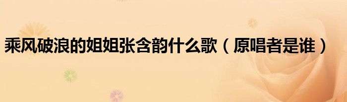 大家好,小帥來為大家解答以上問題。乘風(fēng)破浪的姐姐張含韻什么歌,原唱者是誰很多人還不知道,現(xiàn)在讓我們一起來看看吧!