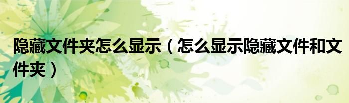 大家好,小帥來為大家解答以上問題。隱藏文件夾怎么顯示,怎么顯示隱藏文件和文件夾很多人還不知道,現在讓我們一起來看看吧!