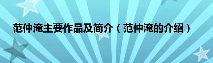 大家好,小帥來為大家解答以上問題。范仲淹主要作品及簡介,范仲淹的介紹很多人還不知道,現在讓我們一起來看看吧!