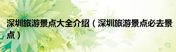 大家好,小帥來為大家解答以上問題。深圳旅游景點大全介紹,深圳旅游景點必去景點很多人還不知道,現在讓我們一起來看看吧!