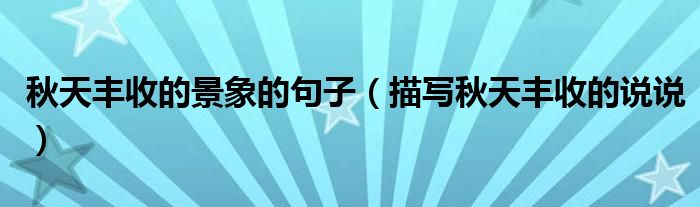 大家好,小帥來為大家解答以上問題。秋天豐收的景象的句子,描寫秋天豐收的說說很多人還不知道,現(xiàn)在讓我們一起來看看吧!