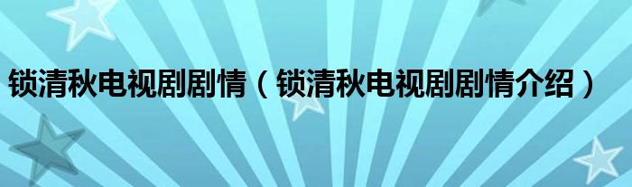 大家好,小帥來為大家解答以上問題。鎖清秋電視劇劇情,鎖清秋電視劇劇情介紹很多人還不知道,現在讓我們一起來看看吧!