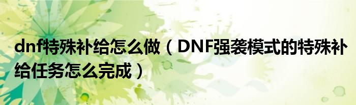 大家好,小帥來為大家解答以上問題。dnf特殊補給怎么做,DNF強襲模式的特殊補給任務怎么完成很多人還不知道,現在讓我們一起來看看吧!