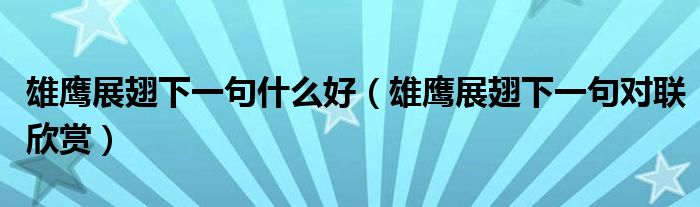 大家好,小帥來為大家解答以上問題。雄鷹展翅下一句什么好,雄鷹展翅下一句對聯欣賞很多人還不知道,現在讓我們一起來看看吧!