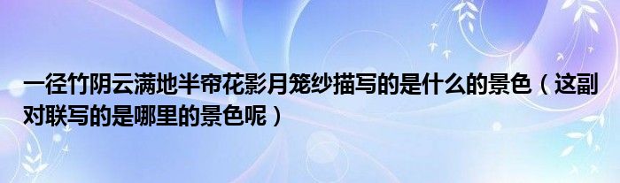 大家好,小帥來為大家解答以上問題。一徑竹陰云滿地半簾花影月籠紗描寫的是什么的景色,這副對聯(lián)寫的是哪里的景色呢很多人還不知道,現(xiàn)在讓我們一起來看看吧!