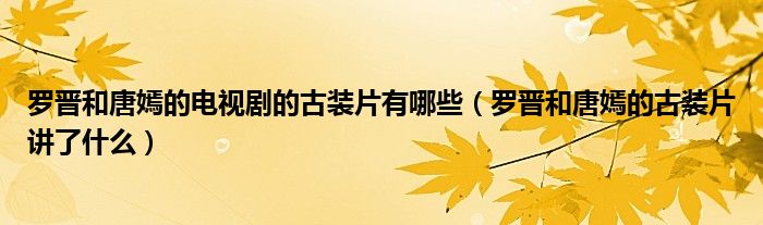 大家好,小帥來為大家解答以上問題。羅晉和唐嫣的電視劇的古裝片有哪些,羅晉和唐嫣的古裝片講了什么很多人還不知道,現在讓我們一起來看看吧!