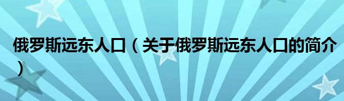 本文關于俄羅斯遠東人口的簡介就講解完畢,希望對大家有所幫助。