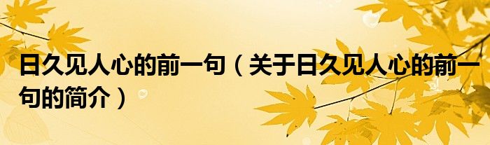 本文關于日久見人心的前一句的簡介就講解完畢,希望對大家有所幫助。