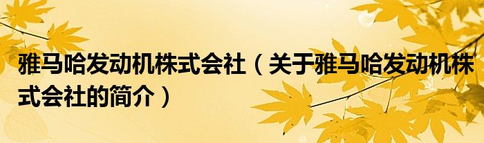 本文關(guān)于雅馬哈發(fā)動機株式會社的簡介就講解完畢,希望對大家有所幫助。