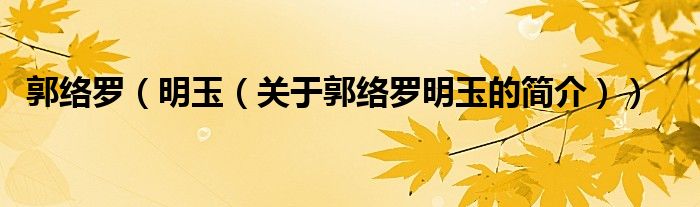 本文關于郭絡羅 明玉的簡介就講解完畢,希望對大家有所幫助。