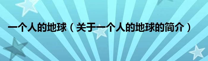 本文關于一個人的地球的簡介就講解完畢,希望對大家有所幫助。
