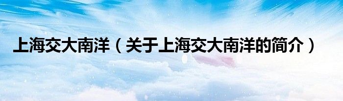 大家好,上海交大南洋,關于上海交大南洋的簡介很多人還不知道,現在讓我們一起來看看吧!