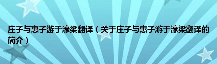 本文關(guān)于莊子與惠子游于濠梁翻譯的簡(jiǎn)介就講解完畢,希望對(duì)大家有所幫助。