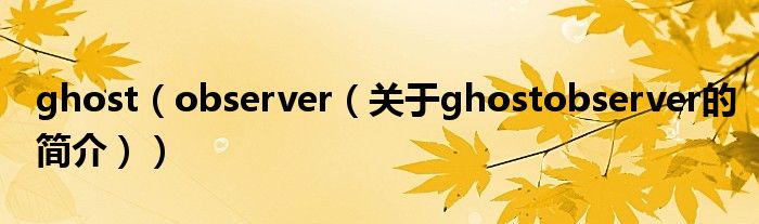 大家好,ghost observer,關(guān)于ghost observer的簡介很多人還不知道,現(xiàn)在讓我們一起來看看吧!