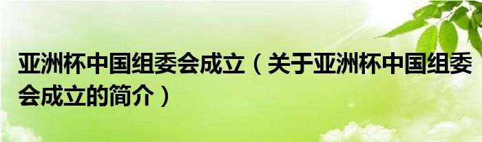 本文關于亞洲杯中國組委會成立的簡介就講解完畢,希望對大家有所幫助。