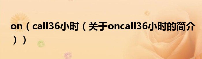 大家好,on call 36 小時(shí),關(guān)于on call 36 小時(shí)的簡介很多人還不知道,現(xiàn)在讓我們一起來看看吧!