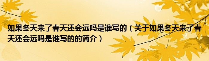 本文關(guān)于如果冬天來了春天還會遠(yuǎn)嗎是誰寫的的簡介就講解完畢,希望對大家有所幫助。